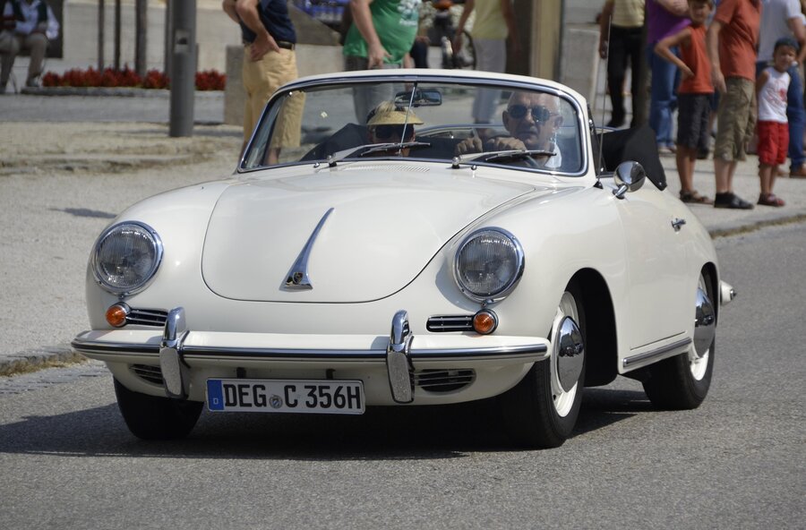 The Porsche 356 is a sports car which was first produced by Austrian company Porsche Konstruktionen GesmbH (1948–1949), and then by German company Dr. Ing. h. c. F. Porsche GmbH (1950–1965). It was Porsche's first production automobile. Earlier cars designed by the Austrian company include Cisitalia Grand Prix race car, the Volkswagen Beetle, and Auto Union Grand Prix cars.